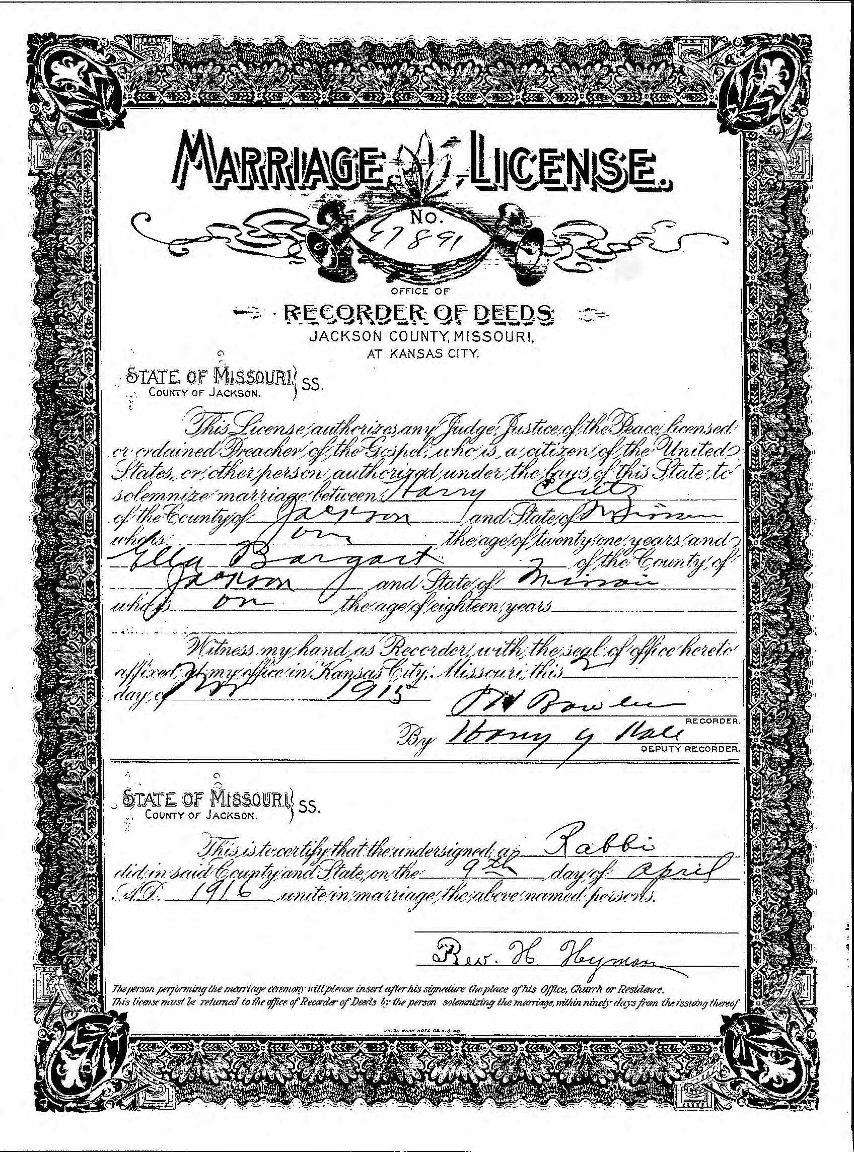 Harry and Ella Bogart Clutz Kesuba Wedding Certificate