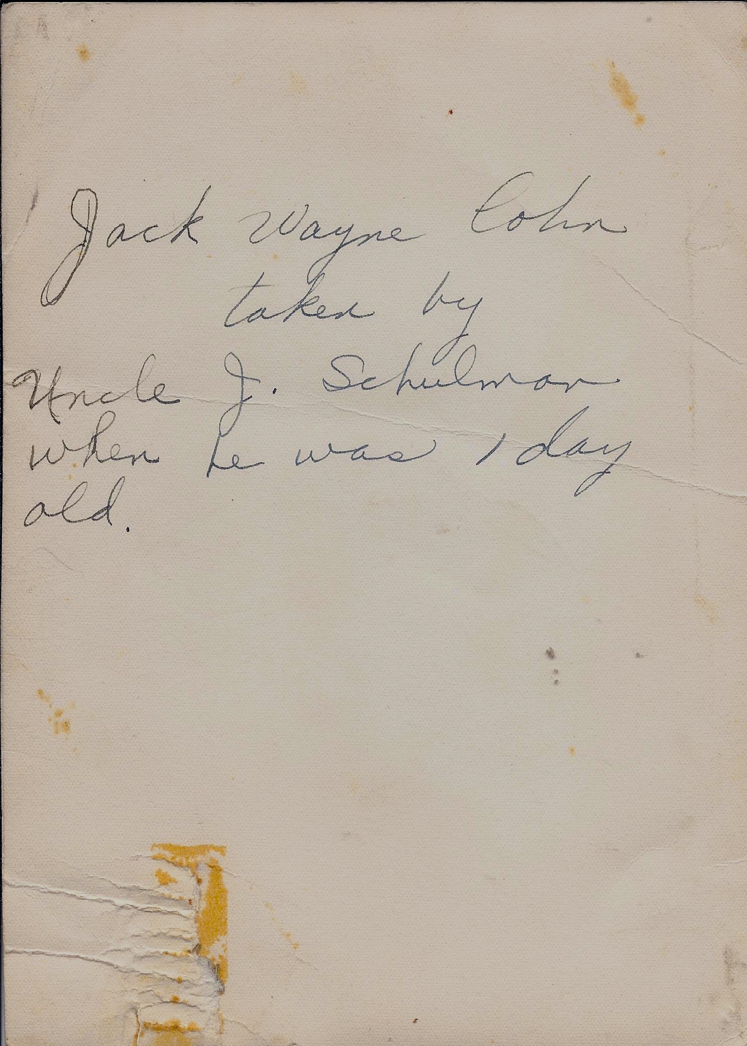Comments on 1955, Jack Cohn - One day old (back)