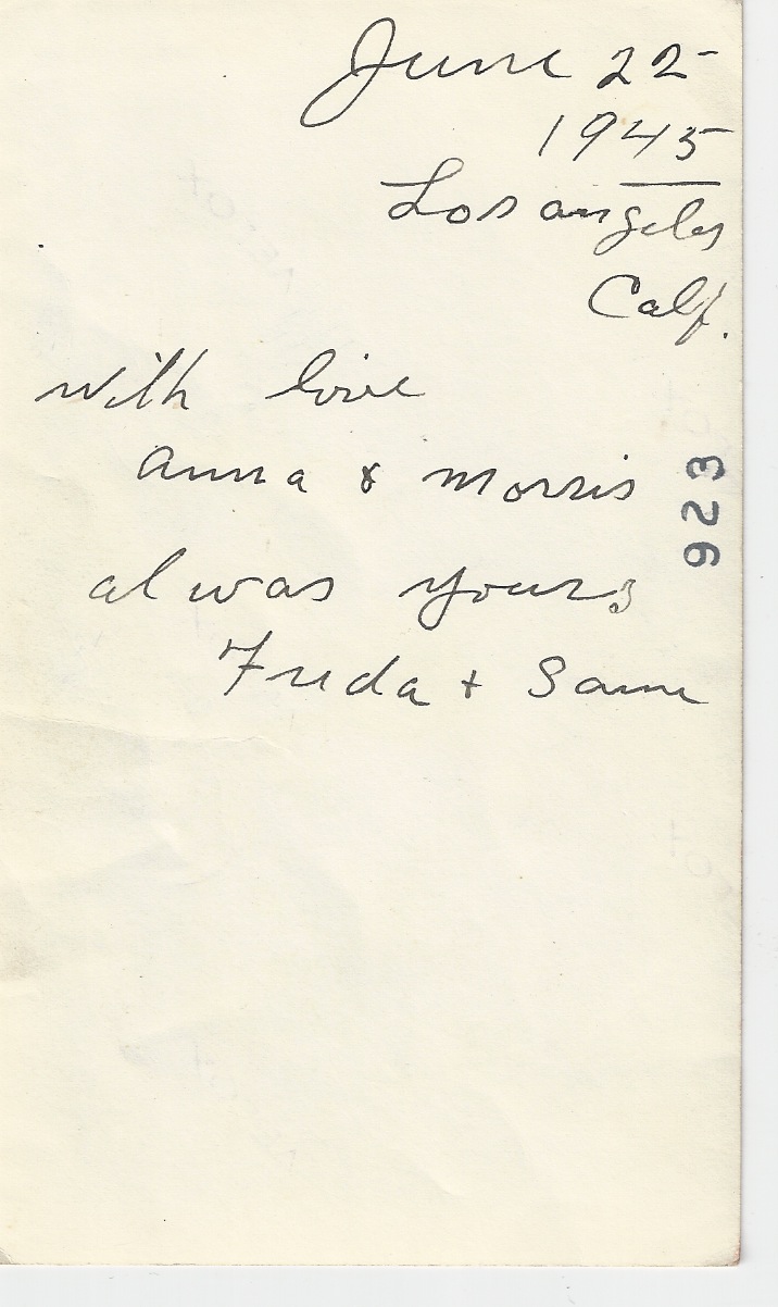 Comments on Freda Ritz Plotsky & Sam Plotsky , LA, CA, 1945 (back)