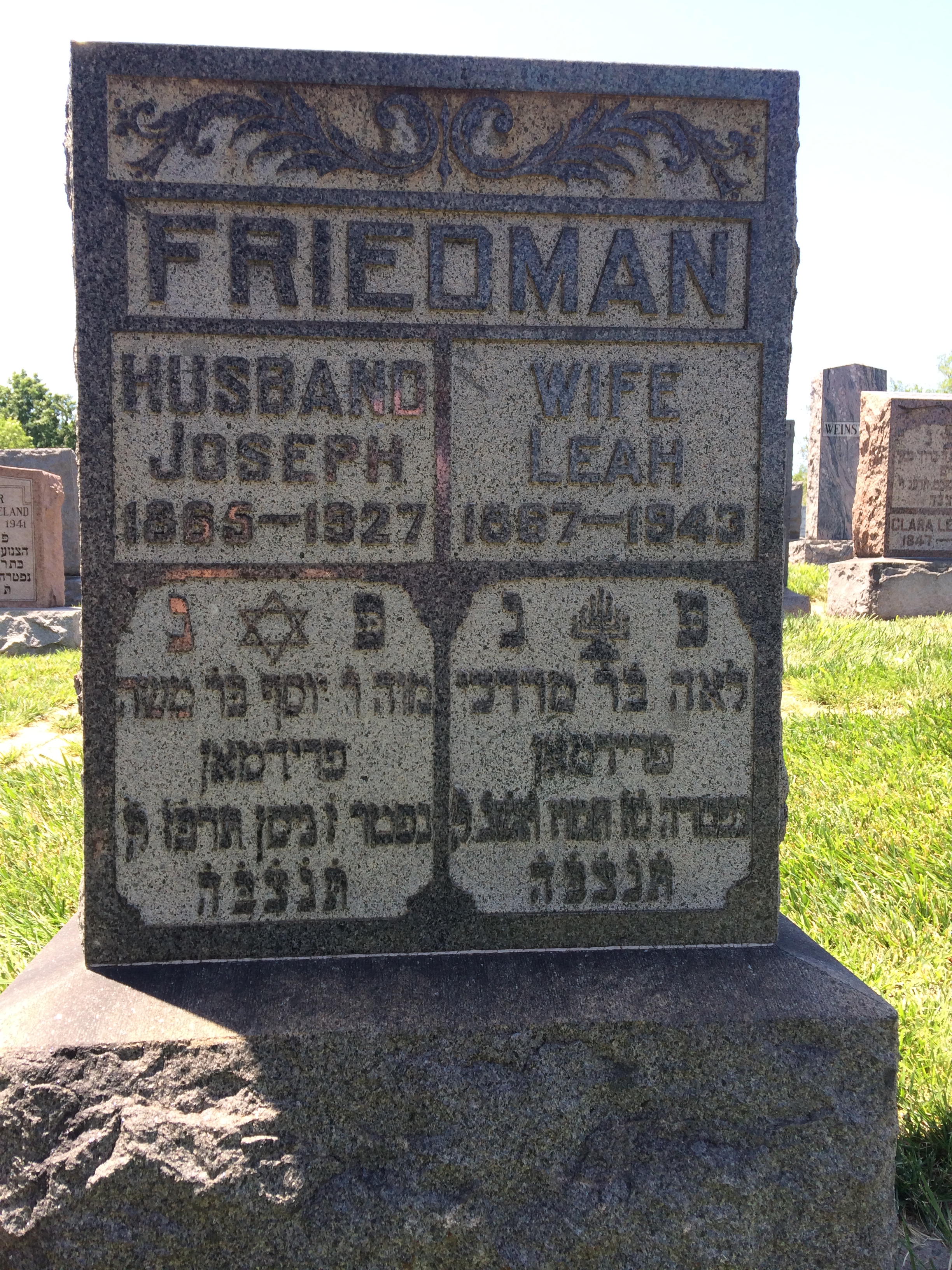 Leah and Joseph Friedman Headstone