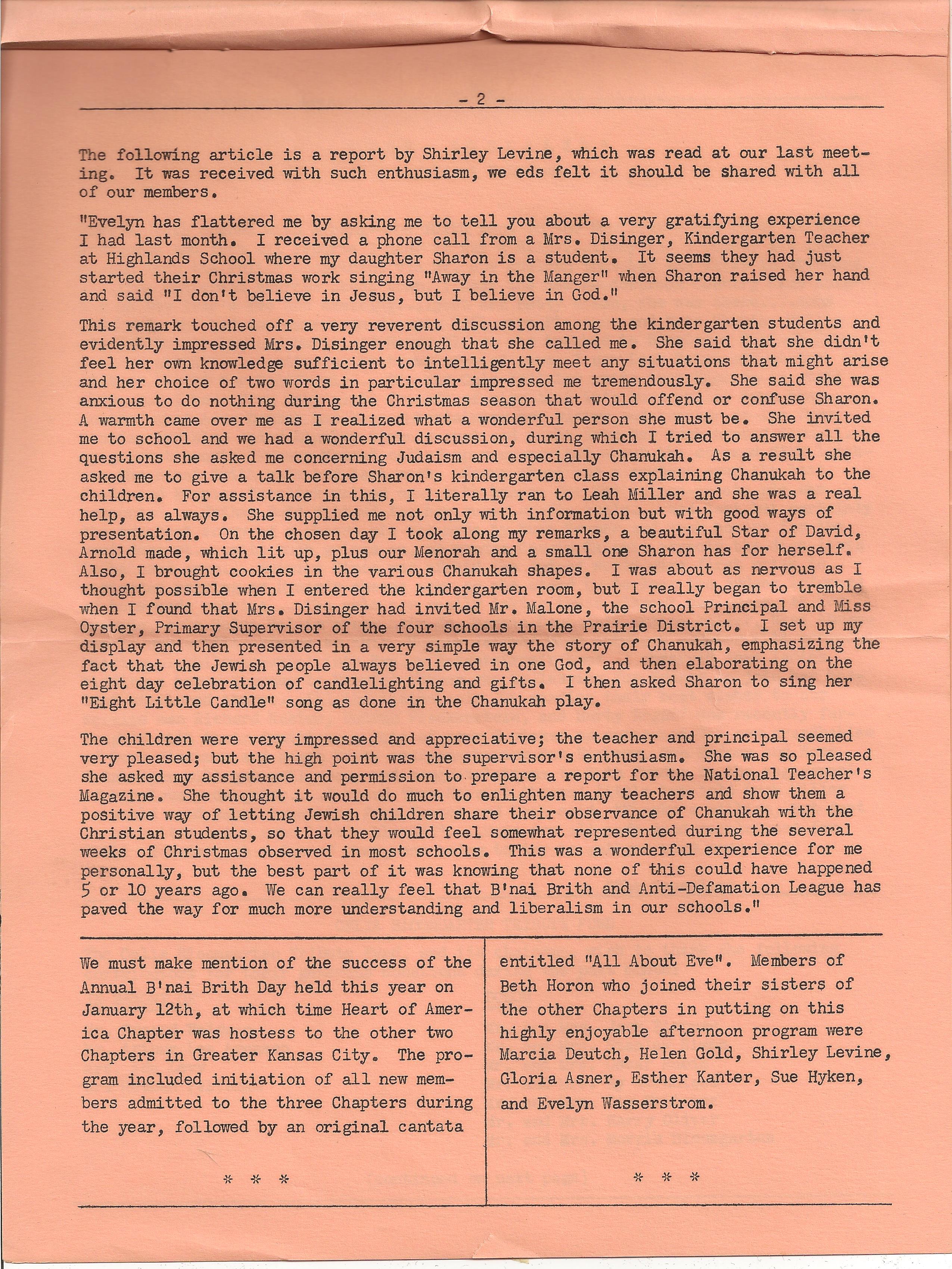 Comments on Shirley Cohn Levine