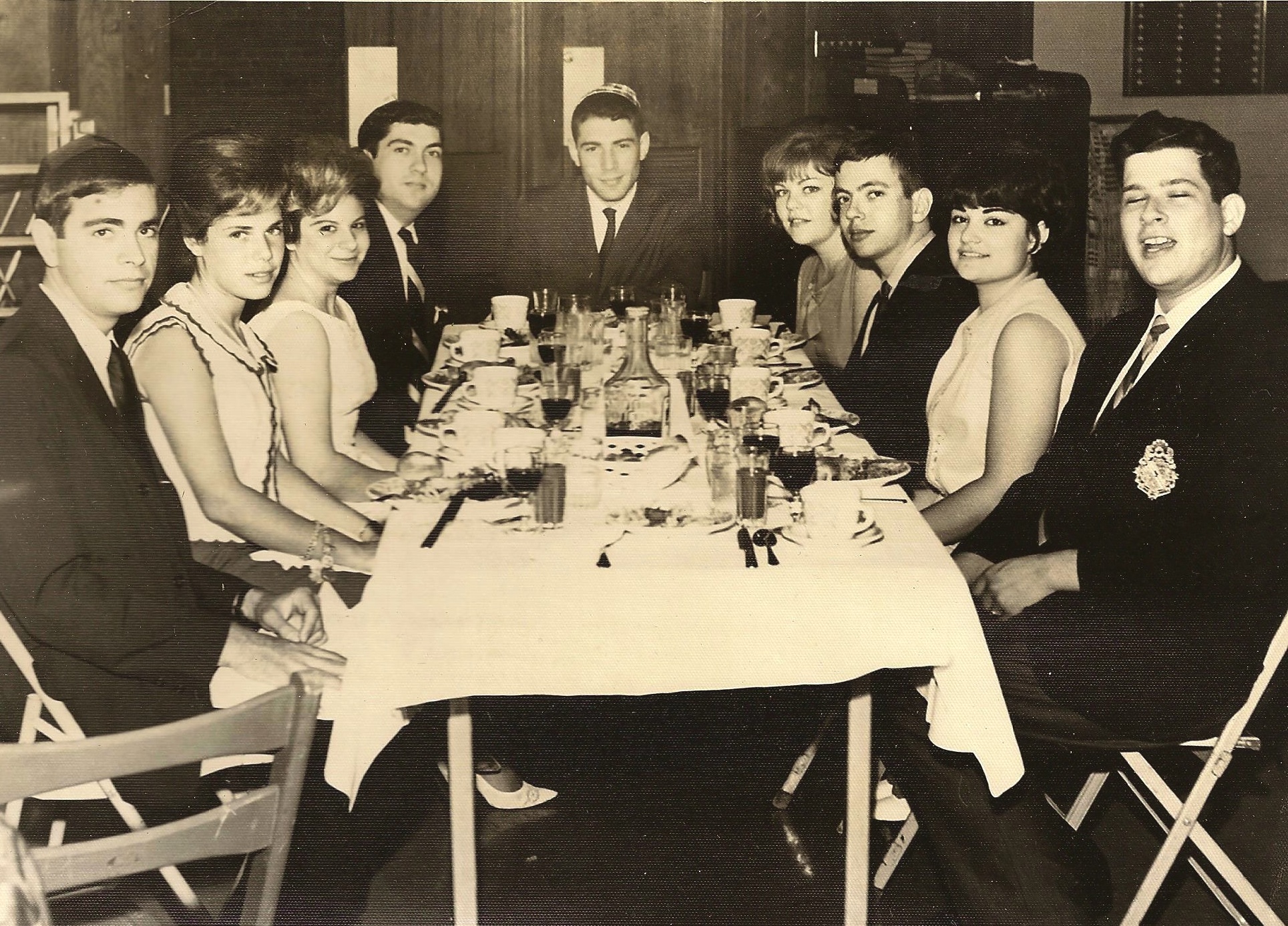 L to R: Mel Cohn, Donna Levine, Bethy Stolov, Hannnan Steinzeig, Charles Levine, Suzie Cohn, Unknown, Libby Cohen Needle, David Baellow