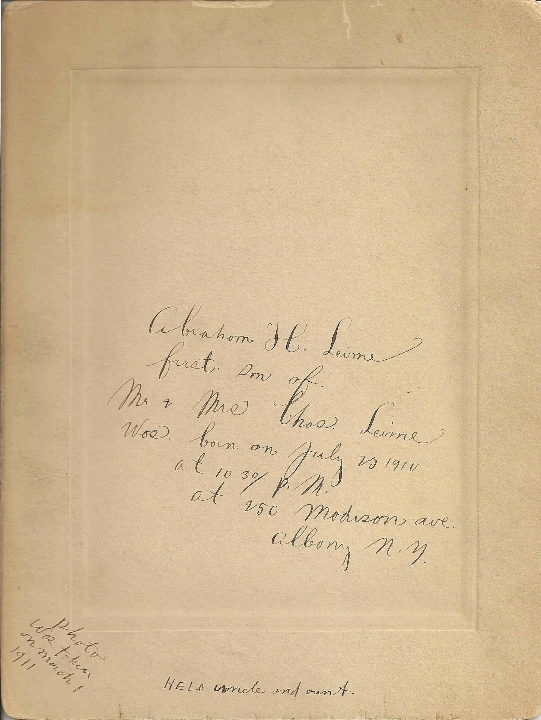 Comments on Abe Levine (back). See notes.