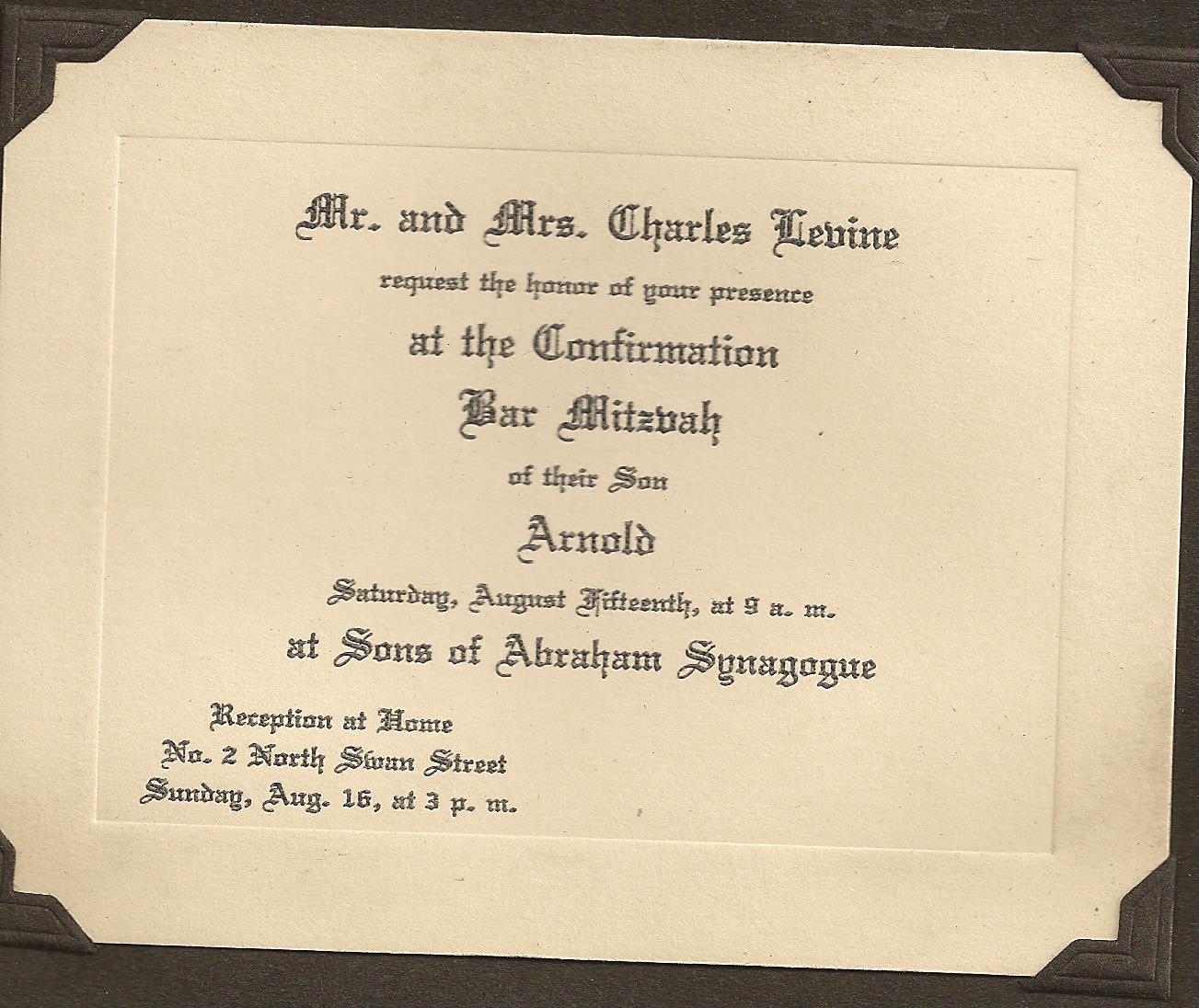 Arnold Levine Bar Mitzvah Invitation