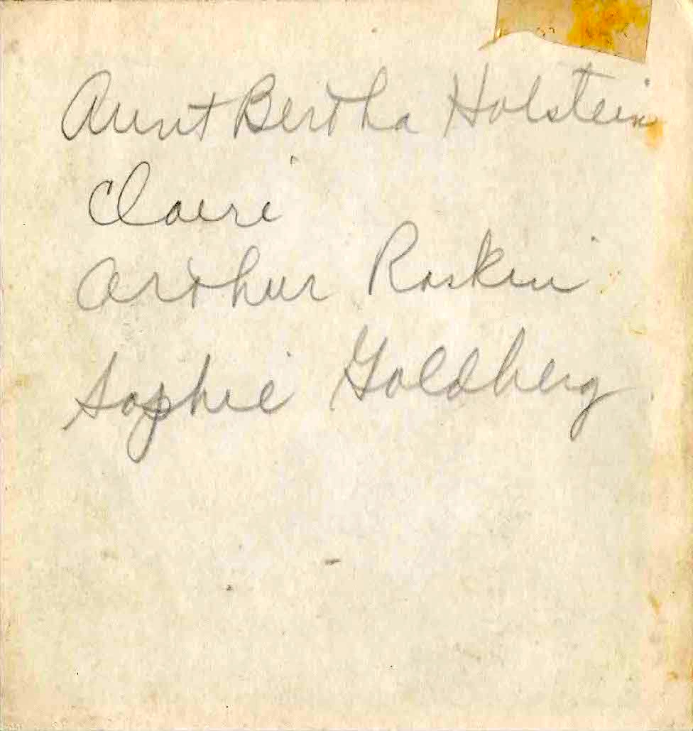 Comments on Aunt Bertha Holstein, Claire, Arthur Raskin, Sophie Goldberg - back