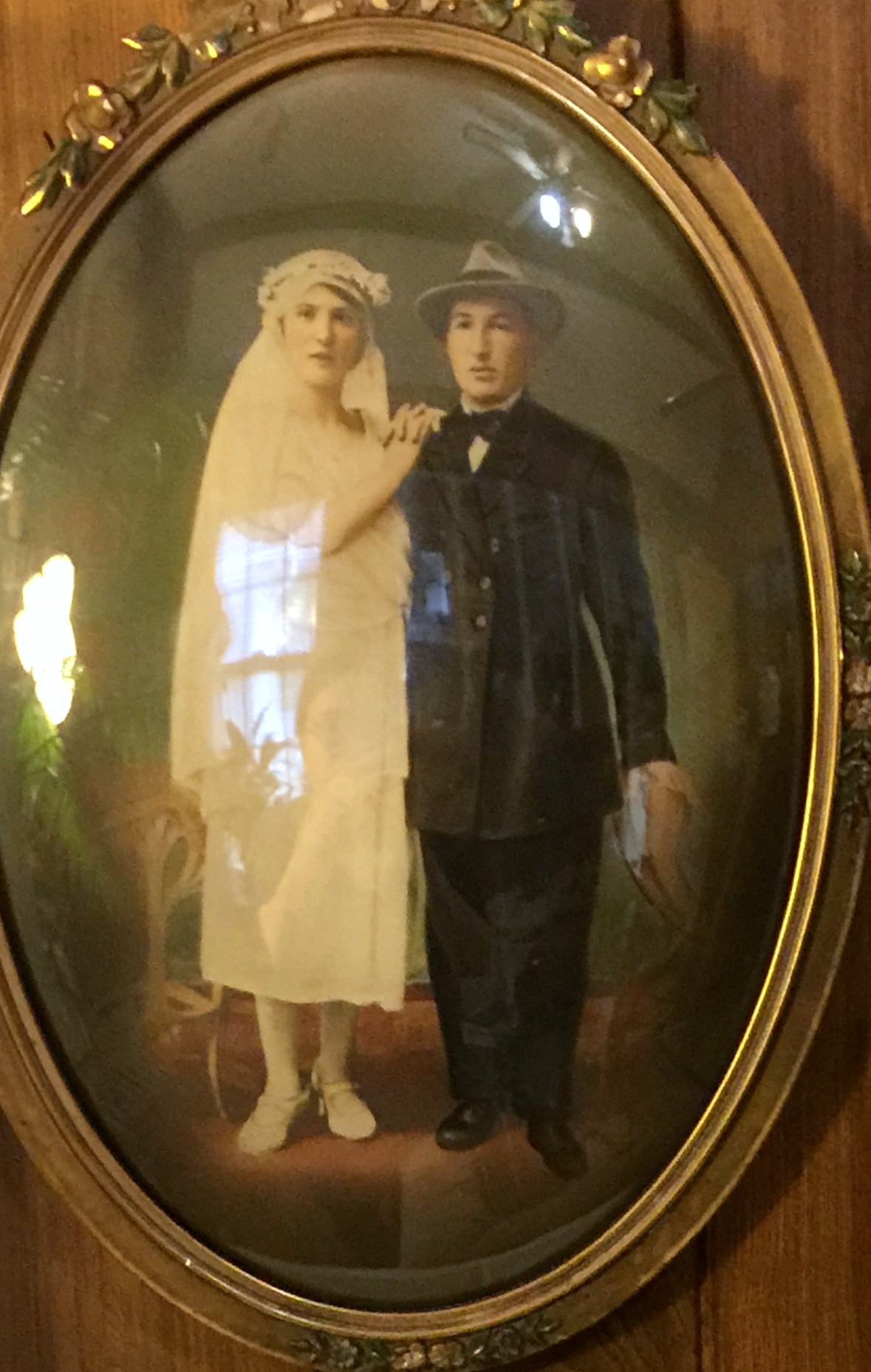 It's in an old time oval frame. I can't even imagine them framing it. Maybe Jake did it??? He was modern with the times.