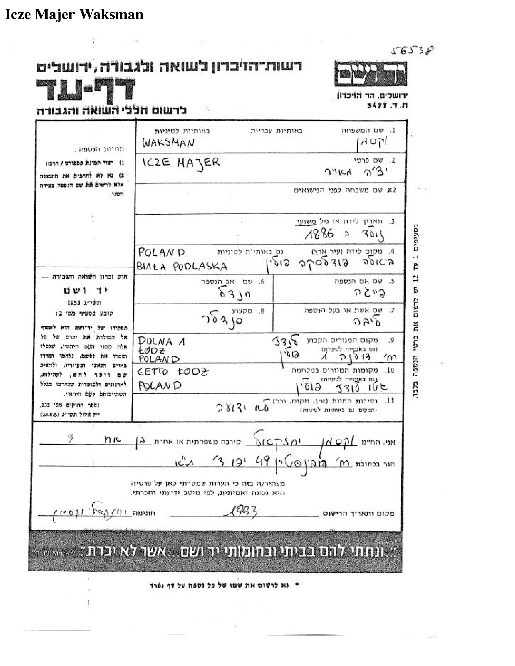 Source Yad Vashem - Pages of Testimony Names Memorial Collection