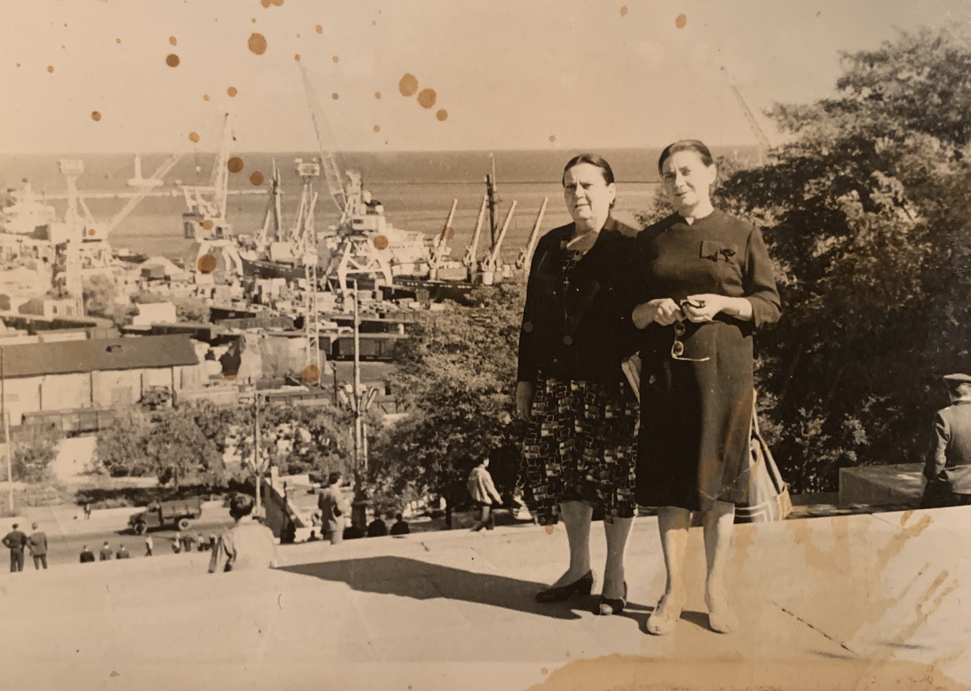 "My father’s cousin Fanya Shoikhet on the right in Odessa. Possibly at the top of famous Potemkin staircase"