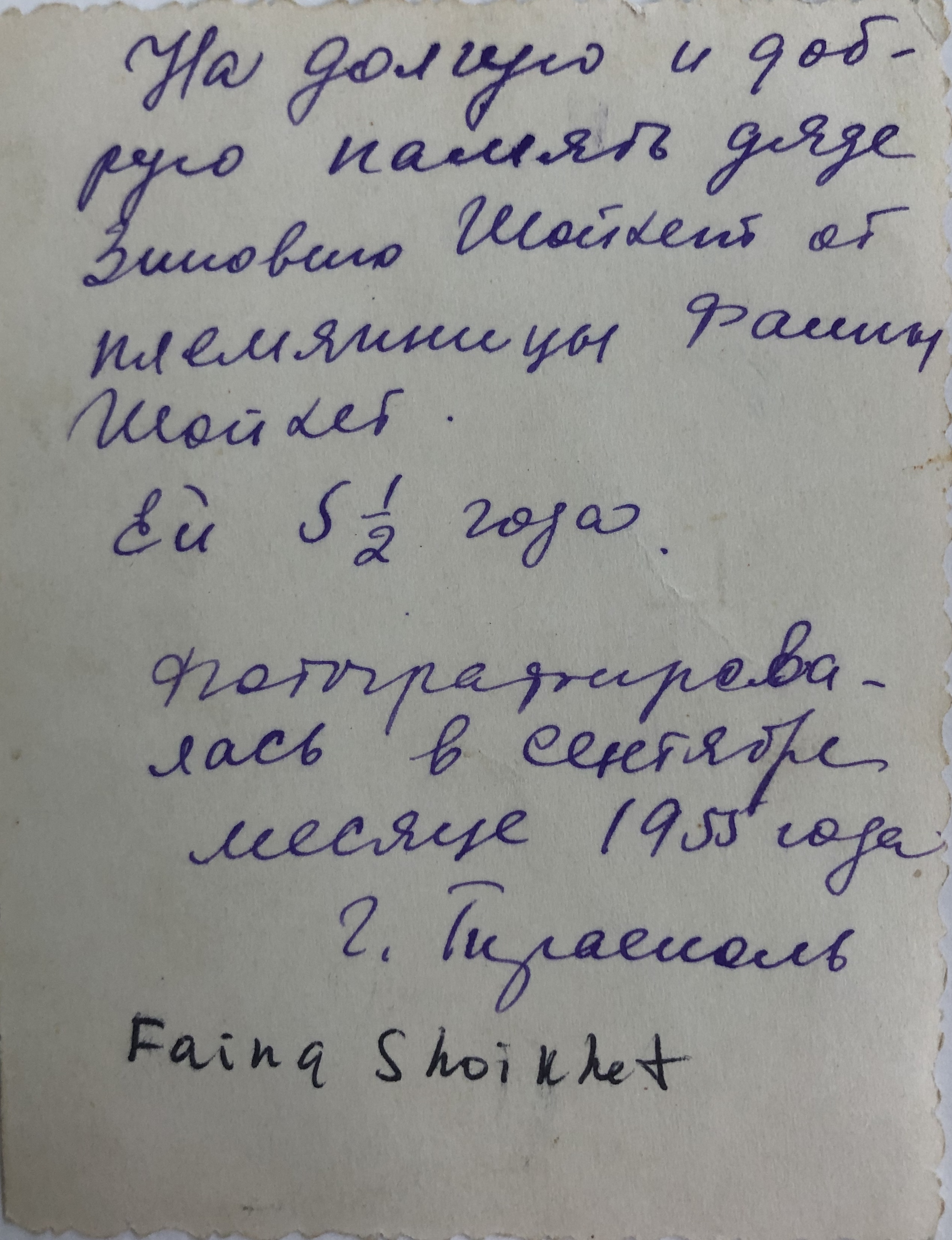 Comments on Faina Shoiket, 1955 (back)