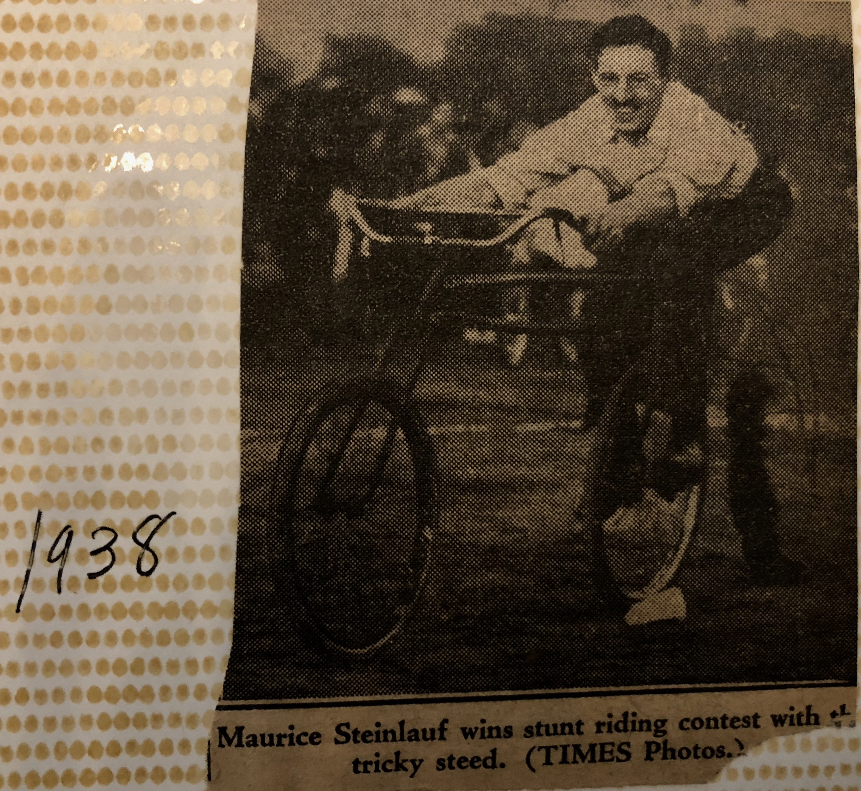 Comments on Maurice Steinlauf wins stunt riding contest with this tricky steed. (TIMES photos), 1938