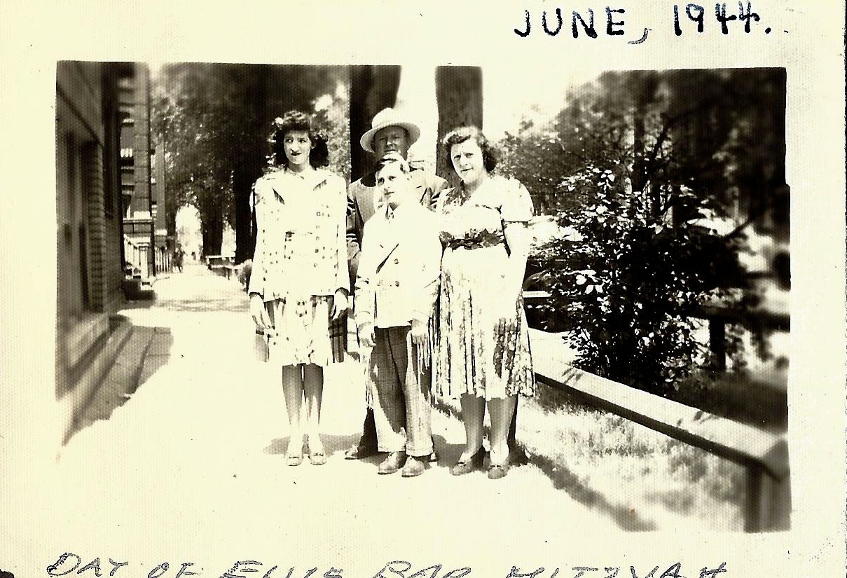 Comments on Frieda Fritzi Schuman Dougoll, Lewis Schuman, Sarah Steinlauf Schuman, and Ellis at his Bar Mitzvah, June, 1944
