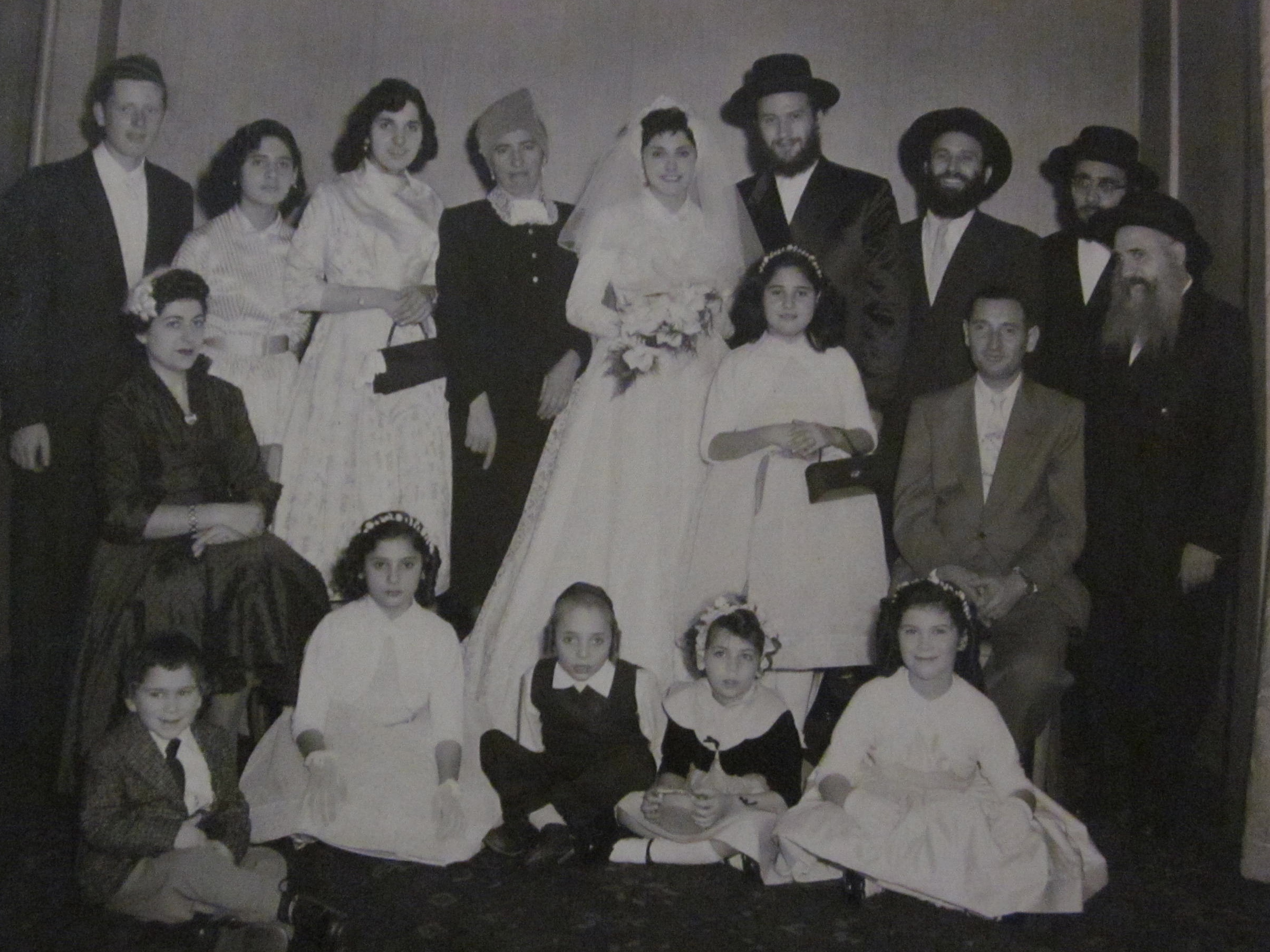 Joe Weiss, Draizy, Feigy, ivka ganz, Miriam Weiss Strolly, Volvie Strolly, Zaleg Obalander, Berrel Weiss, Shloime Weiss. Middle Row: Zaleg's wife, Chaya Leah, Markus Weiss, Seated: Ganz boy, Weiss girl, Isaacle, ?, Chana Ganz