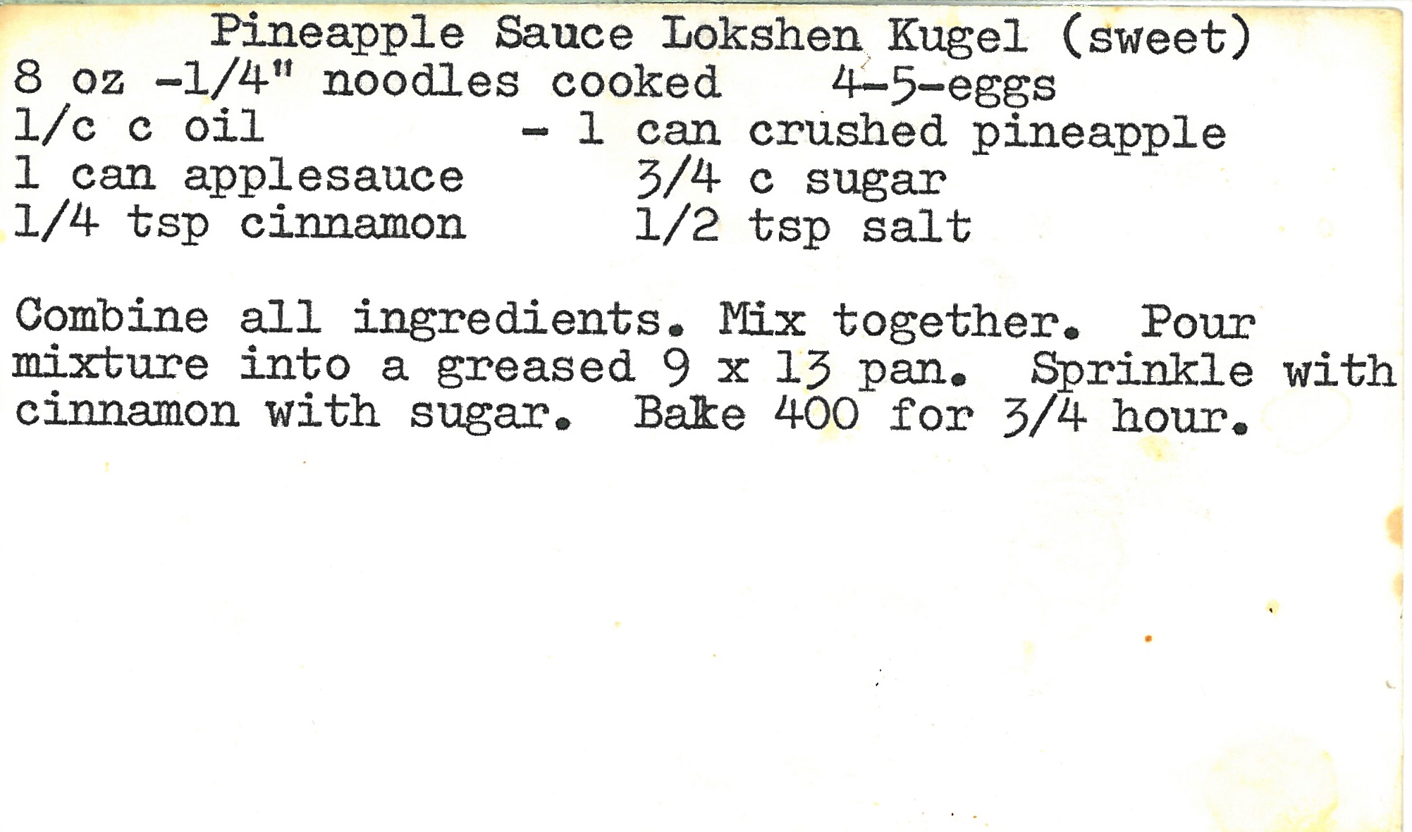 Pineapple Sauce Lokshen Kugel (sweet)