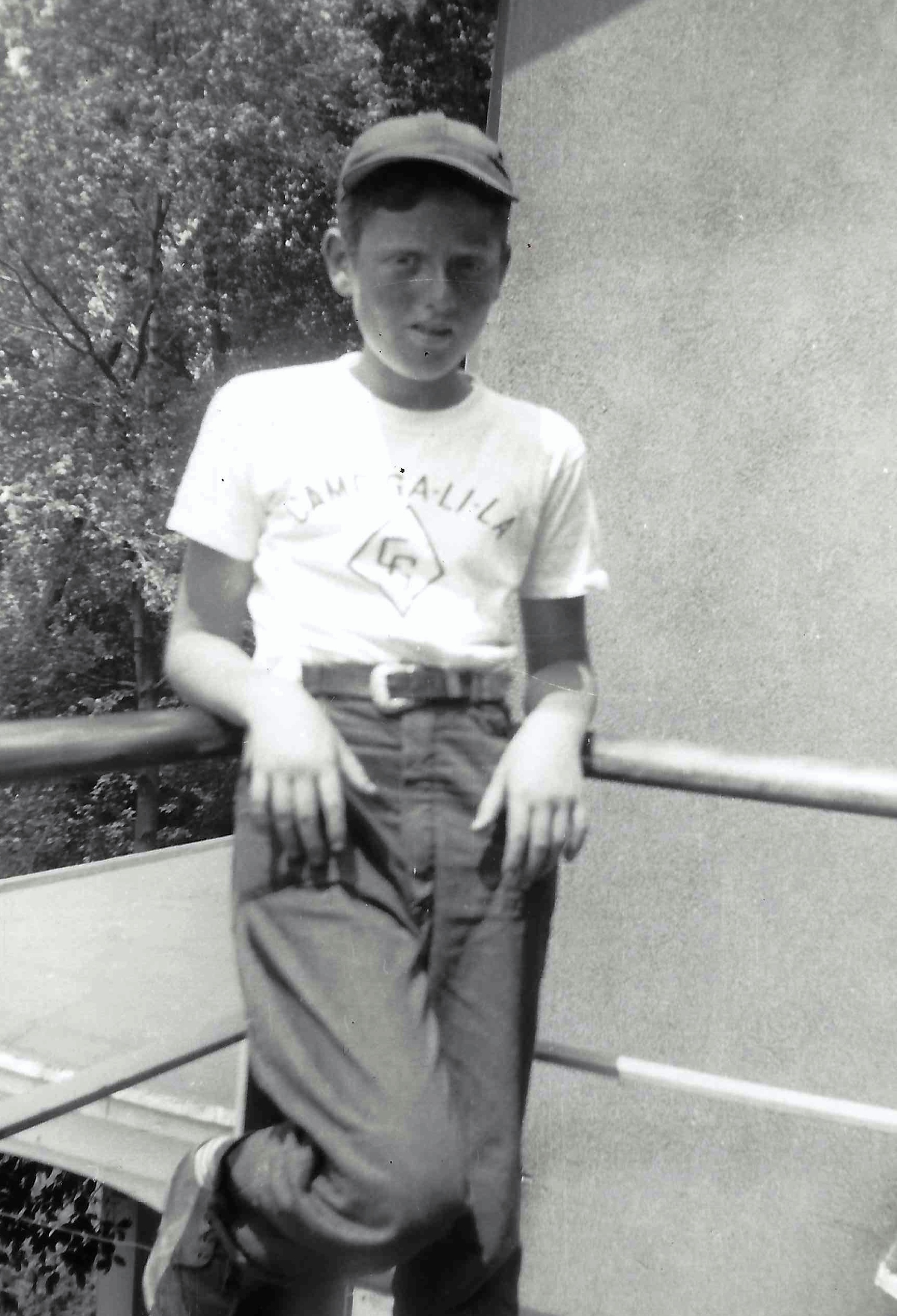 Comments on Joe Weiss wearing a Camp Galila tshirt at Hyde Park. 1951. 12 1/2 years. See notes.