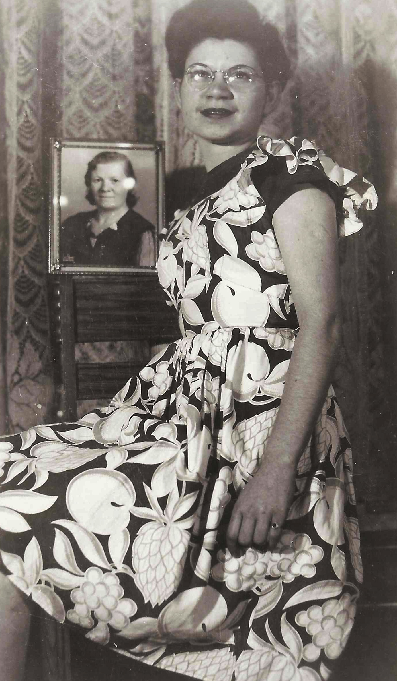 with a photo of her mother, Libby Baellow Cohn who had passed away 6 years before this picture