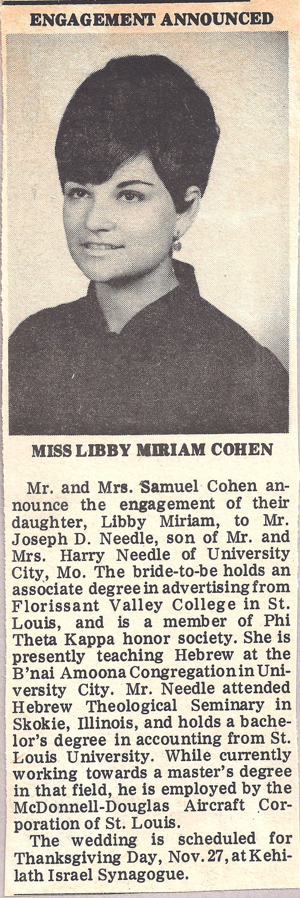 Libby Cohen Needle engagement announcement