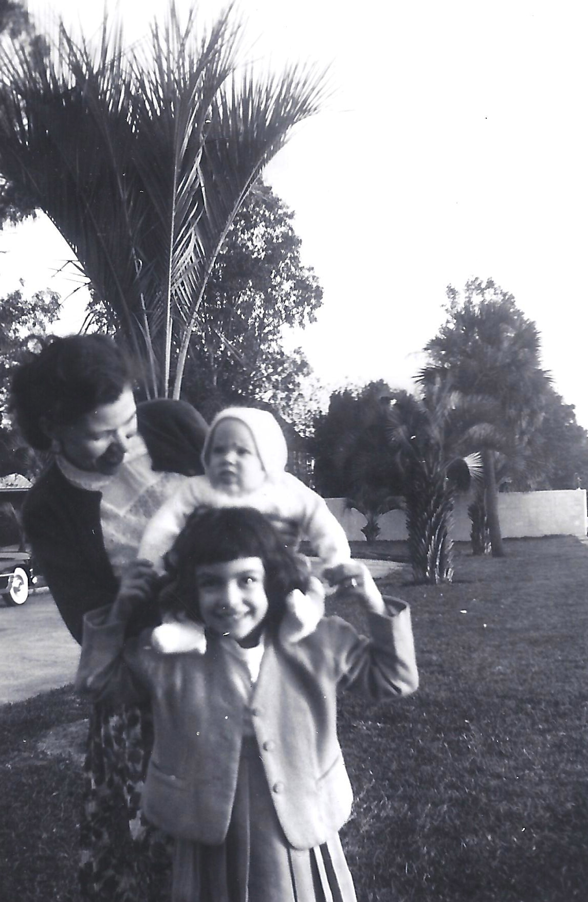Fannie Cohn Cohen w/ Libby Cohen Needle holding baby brother Harvey on her shoulders. 1953