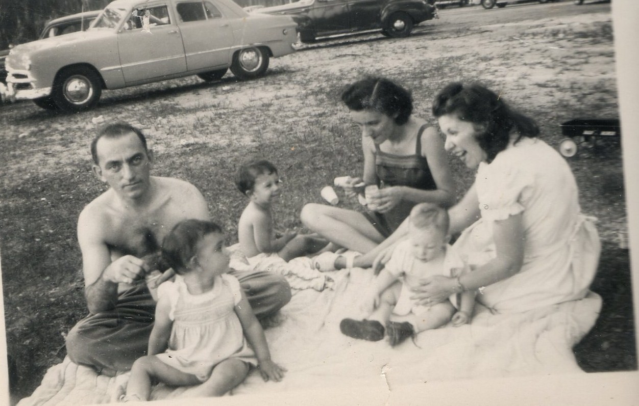 Sammy Cohen w/ Libby Cohen Needle and Fannie Cohn Cohen w/ Marvin Cohen, with unknown lady and boy behind them
