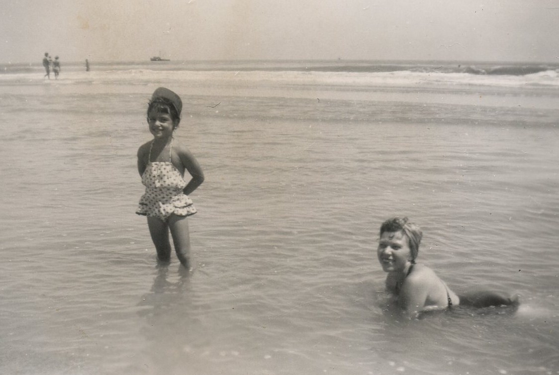 Libby Cohen Needle (standing) and her mother Fannie Cohn Cohen (in the water)