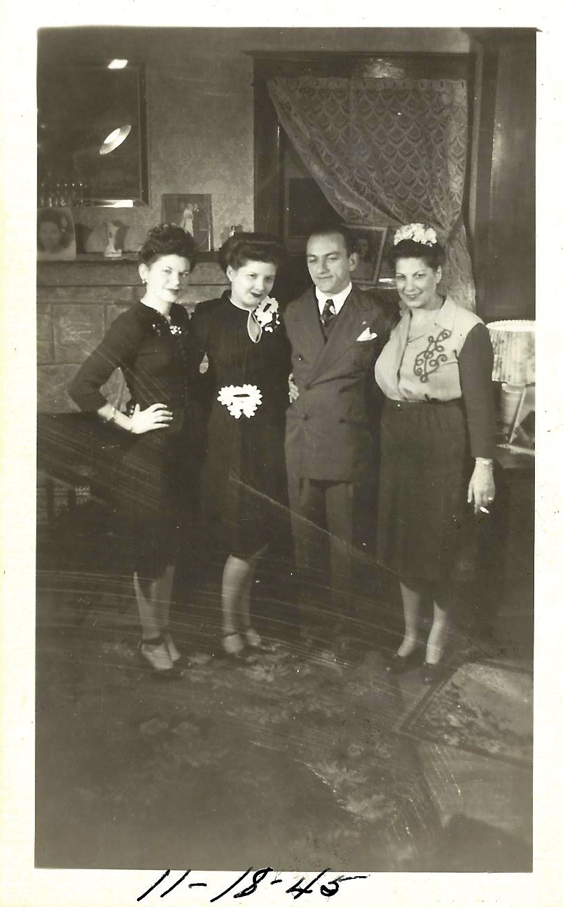 Eva Cohn Tulchinsky, Bertie Cohn Levin, Sammy Cohen, Esther Baellow Wolfson. Nov 18, 1945