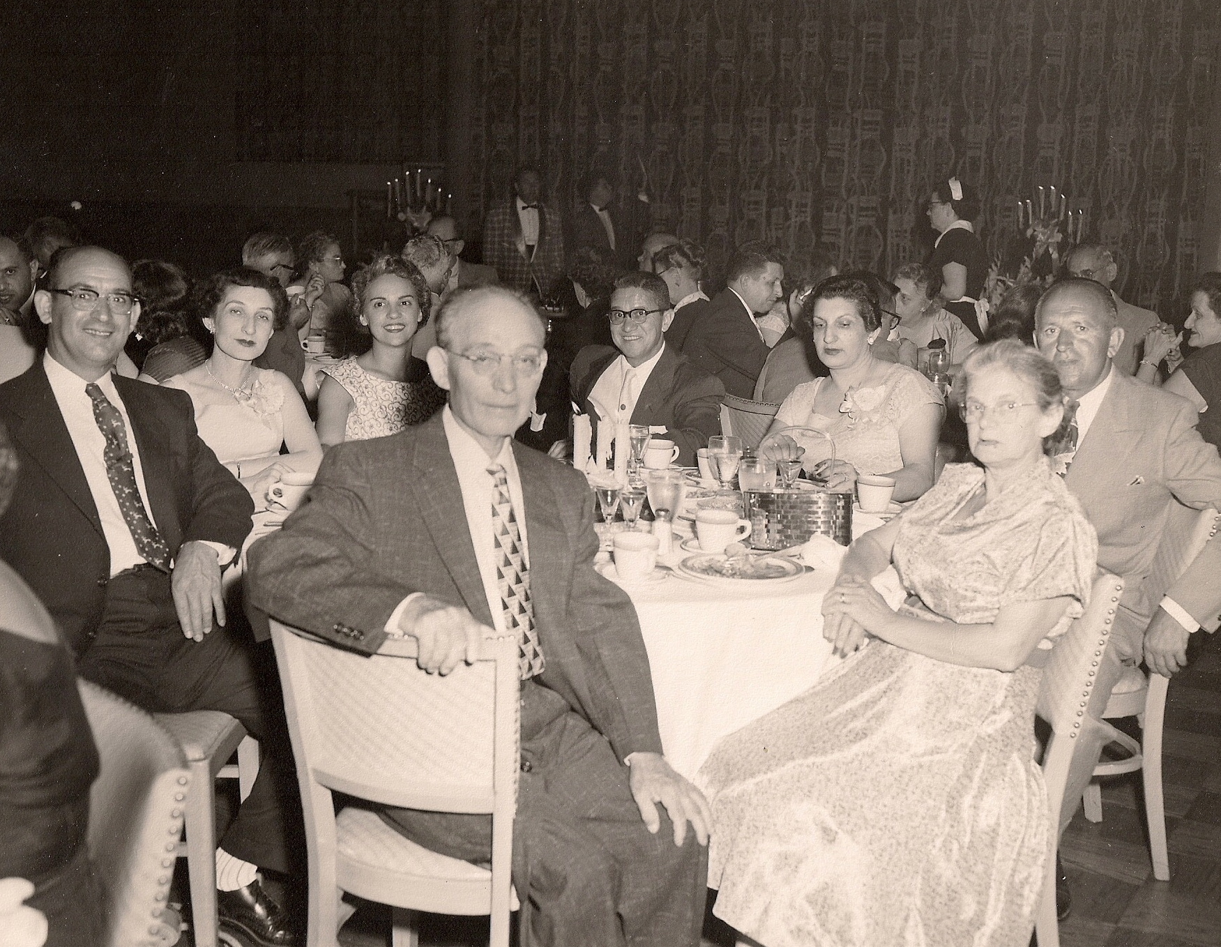 Left to righ (going around the back of the table)t: Max & Esther Levinson, Helen & Ben Slotnick (not related), Sarah Baellow Dubin, Schultz Dubin, Schultz Dubin, Esther Portnoy.
