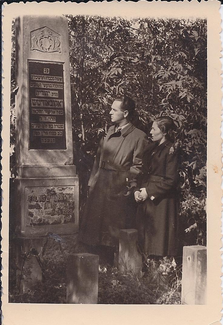 Majer and Sarah Zelberman Jakubowicz at the headstone grave of Judith Idesa Herszkowicz Hershkowitz