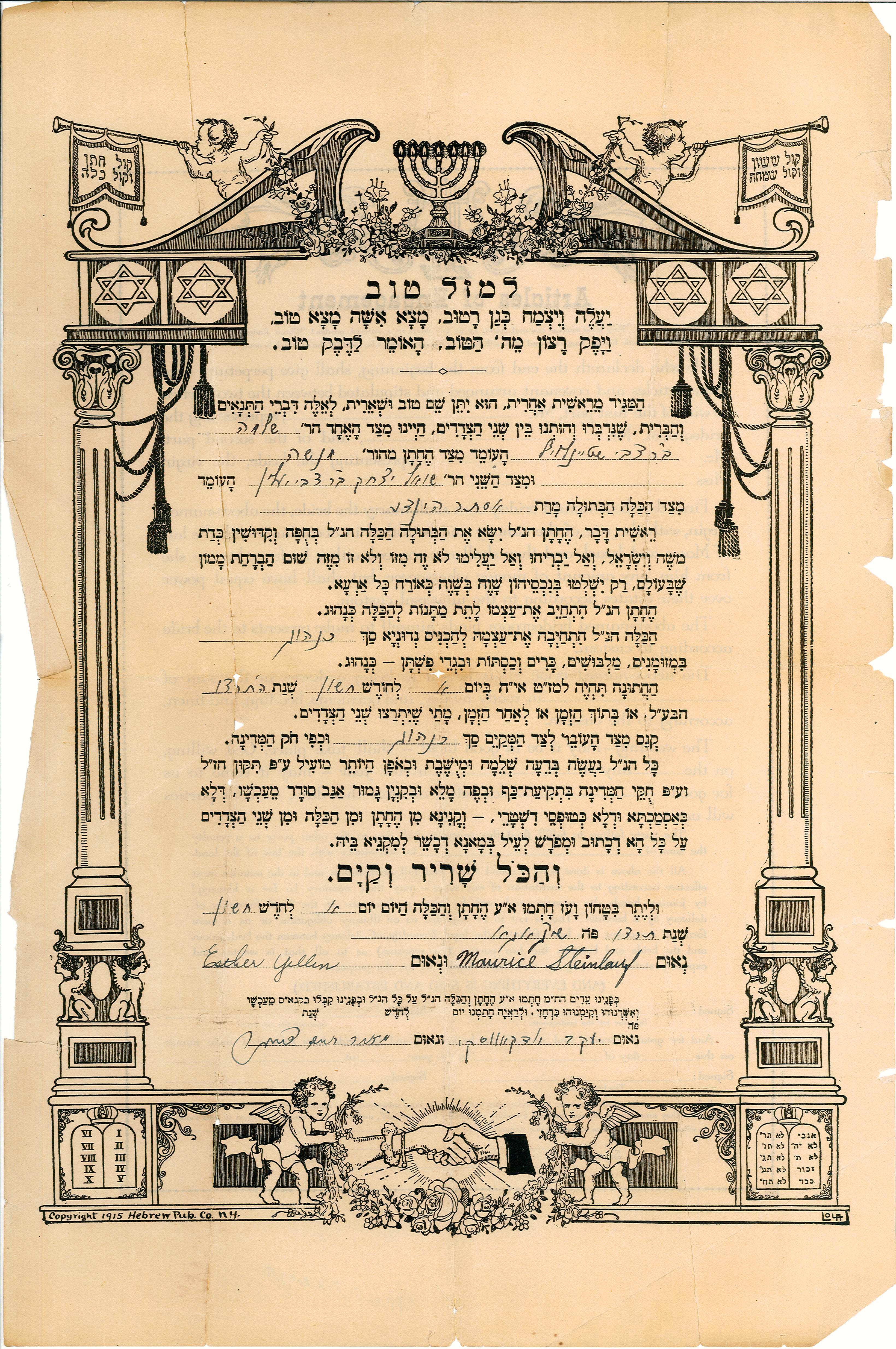 Comments on Esther Yellen and Maurice Steinlauf Wedding Tanaim, 1929