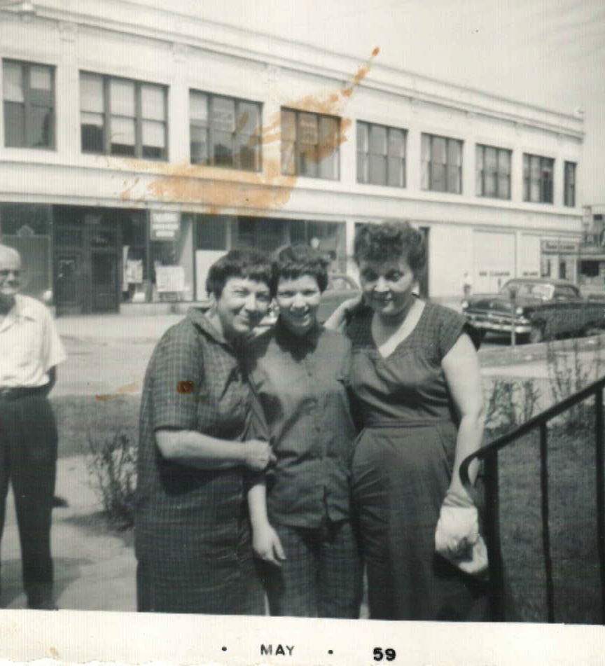Esther Steinlauf, Shelly Steinlauf Adler, and our landlady on St. Louis and Lawrence in Albany Park, Mrs. Nathanson (plus an innocent bystander on the side.)