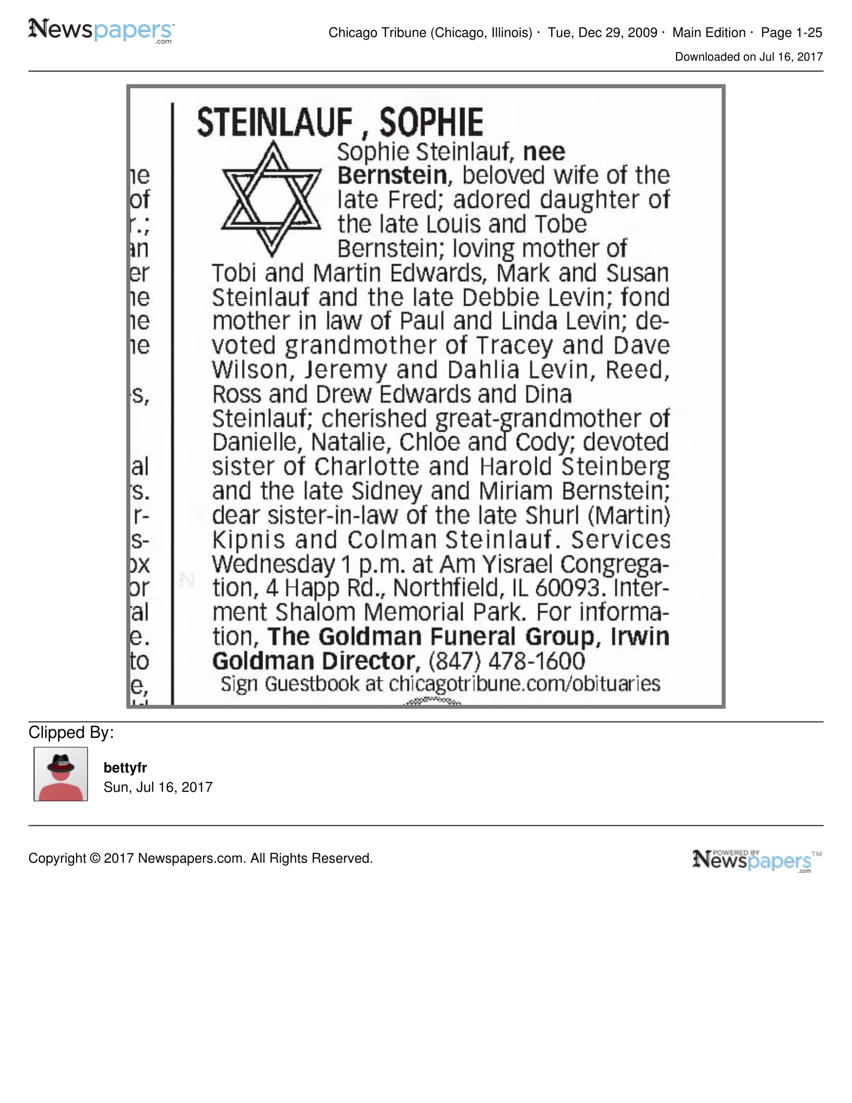 Sophie Bernstein Steinlauf